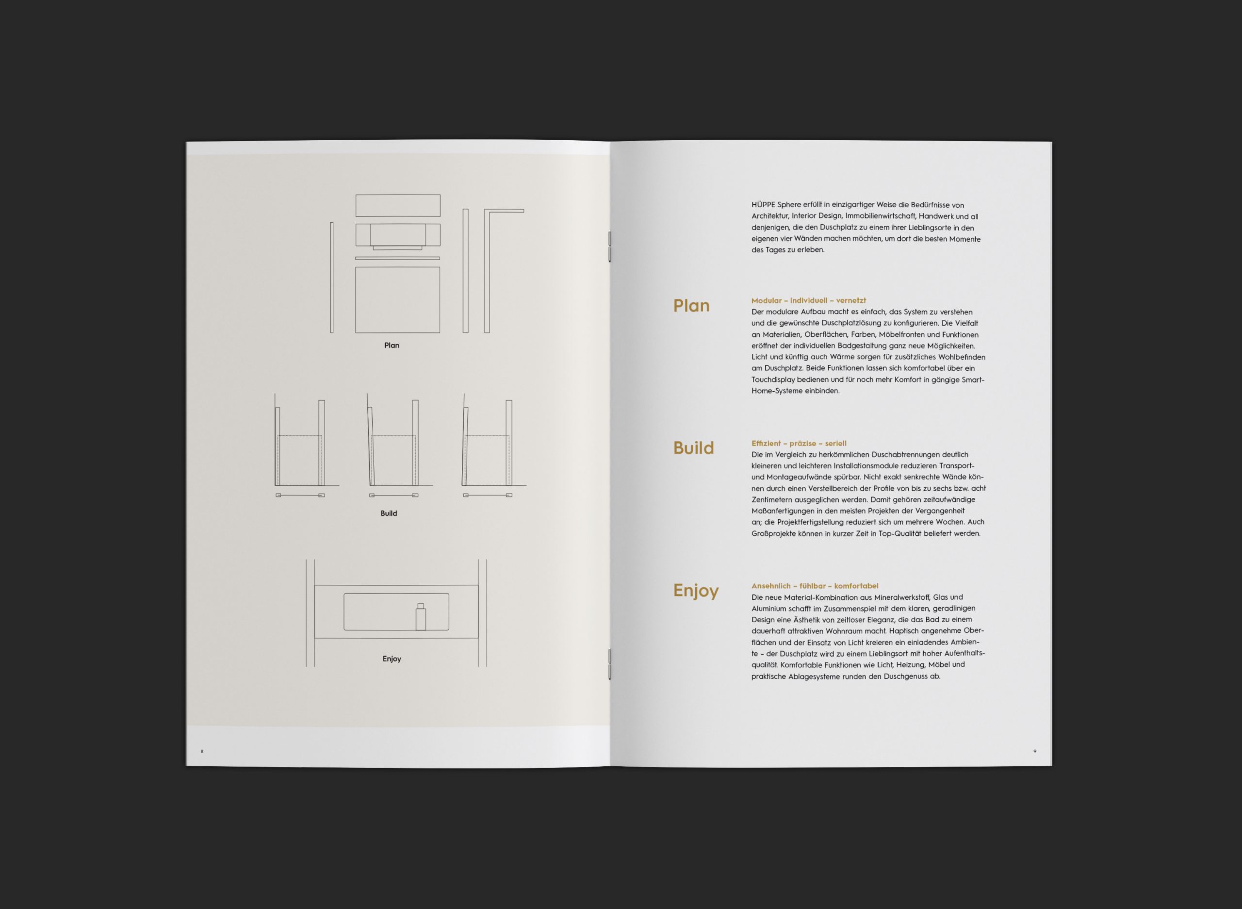 1966 war Hüppe der „Erfinder der Duschabtrennung“. 2025 definiert das niedersächsische Unternehmen die Dusche abermals neu: mit der hochinnovativen Duschabtrennung Hüppe Sphere, die den Duschplatz zu einem integralen Gestaltungselement des Raumes macht – und „eine neue Ära der Badarchitektur“ einläutet. Ebenso konsequent wie das Produkt zeigt sich auch die Kommunikation für die Zielgruppe Architekten – klar, hochästhetisch, puristisch, logisch. Entwickelt und realisiert von Werbung etc., folgt der konsequente Aufbau der Kampagne exakt der Vorgehensweise der Architekten in diesem Bereich – und bietet Maßnahmen und Möglichkeiten, die von der Zielgruppe direkt als Arbeitstool genutzt werden kann. Den Kick-off der Kampagne für Hüppe Sphere bildet ein Architektur-Event zum Thema „Modulares Bauen“. Weitere Bestandteile sind eine edle, architektengerechte Produktbroschüre, ein Online-Konfigurator sowie eine Fachkampagne, digital und in Print.